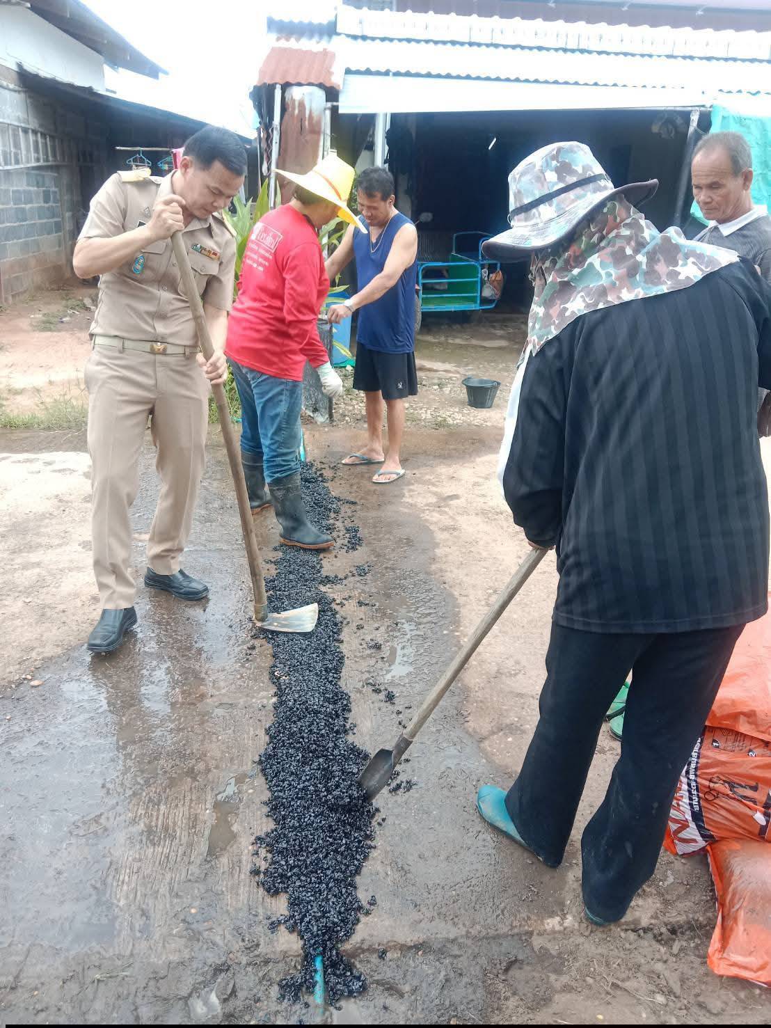 คณะผู้บริหารลงพื้นที่สำรวจถนนชำรุดภายในตำบล
