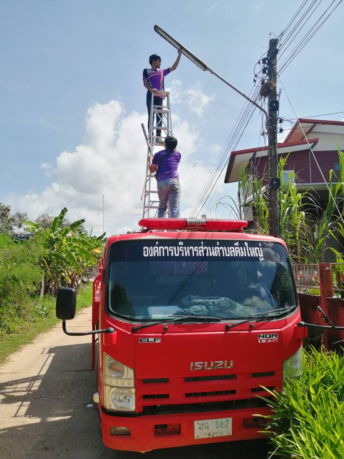 ซ่อมแซมไฟฟ้าส่องสว่างภายในตำบลคึมใหญ่