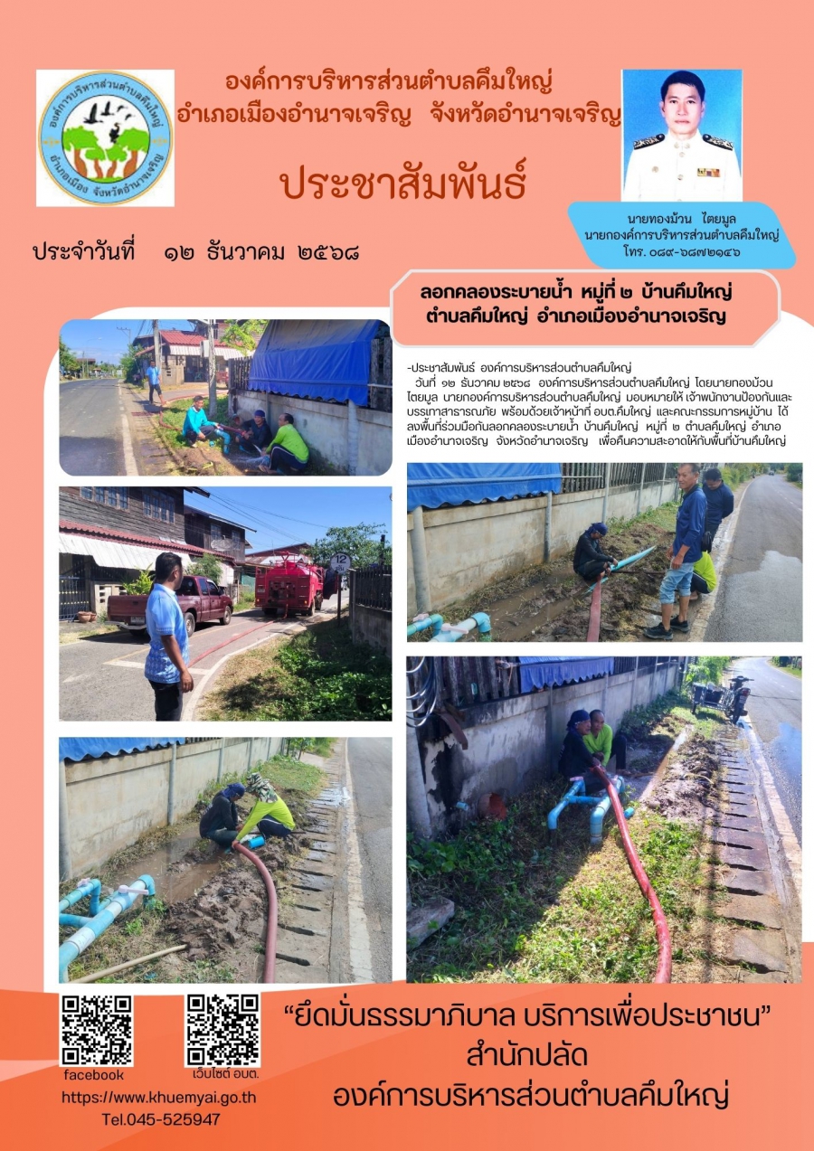 ลอกคลองระบายน้ำ หมู่ที่ ๒ ตำบลคึมใหญ่ อ.เมือง จ.อำนาจเจริญ