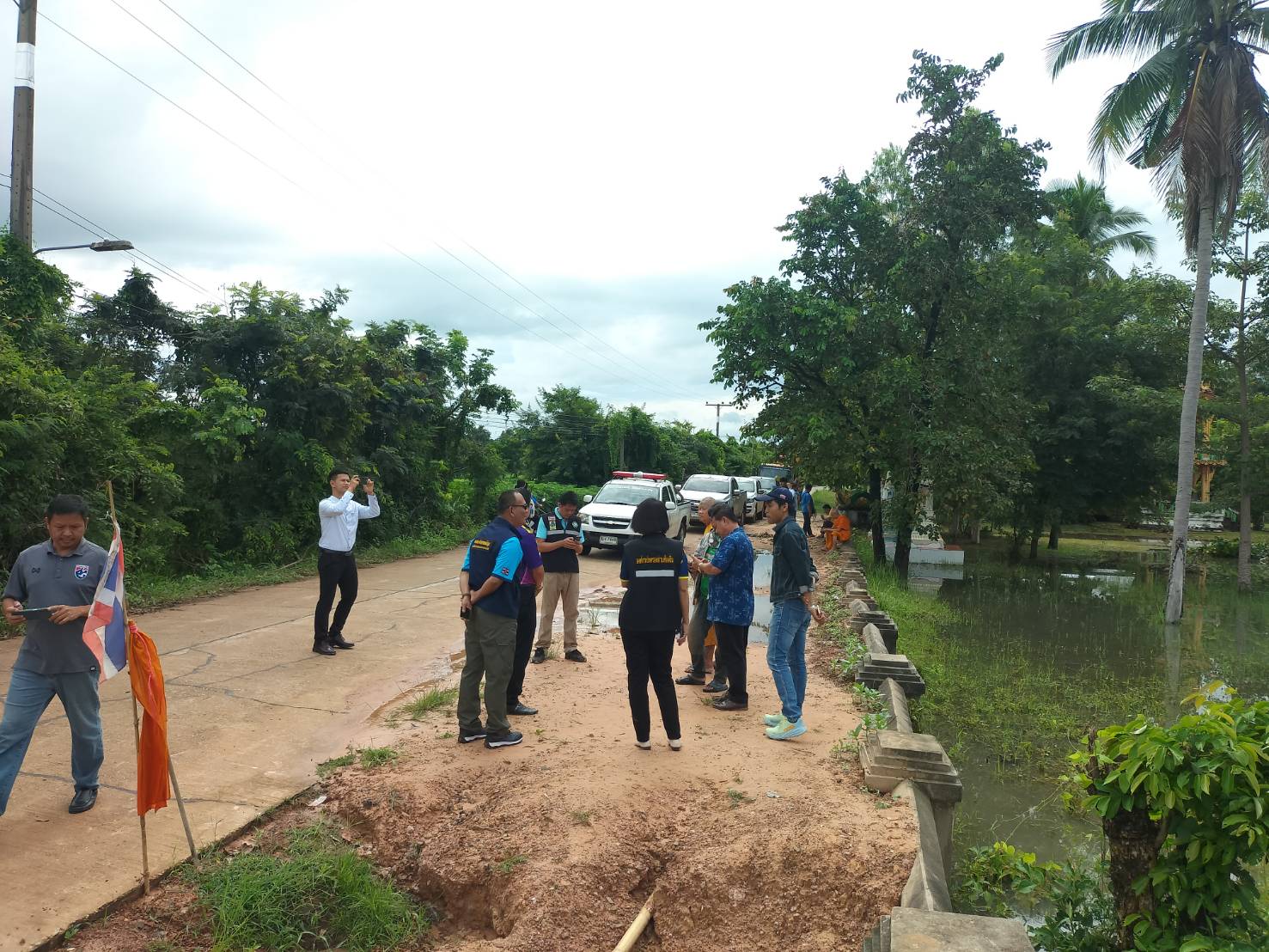 หน่วยงาน อบจ. และเจ้าหน้าที่ อบต.คึมใหญ่ ลงพื้นที่ตรวจสอบน้ำท่วมกักขังวัดบ้านนาคำร่วม หมู่ที่ 3