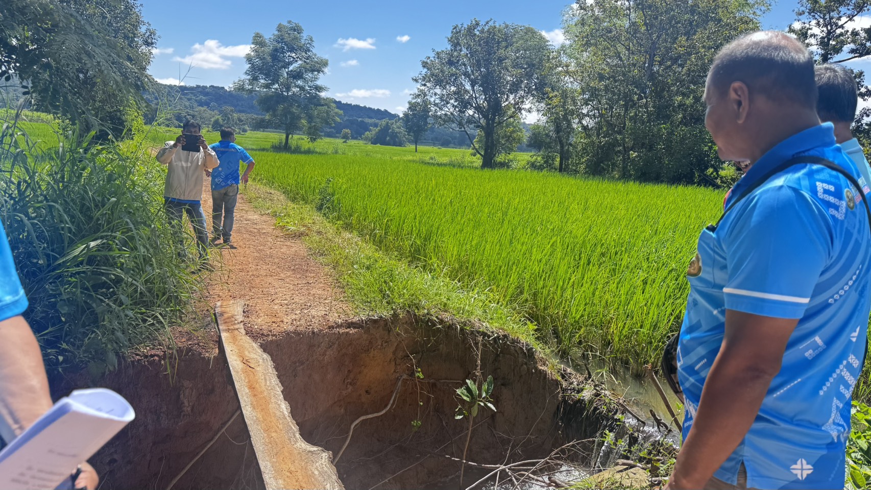 คณะผู้บริหารพร้อมสมาชิกลงพื้นที่สำรวจเส้นทางที่ชำรุดเสียหายภายในตำบลคึมใหญ่