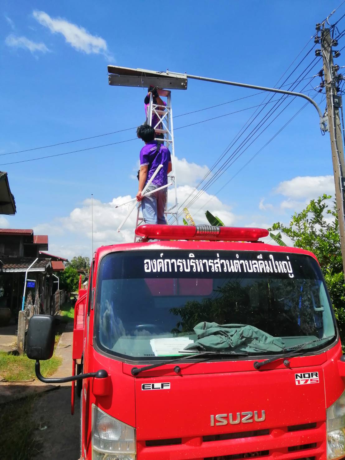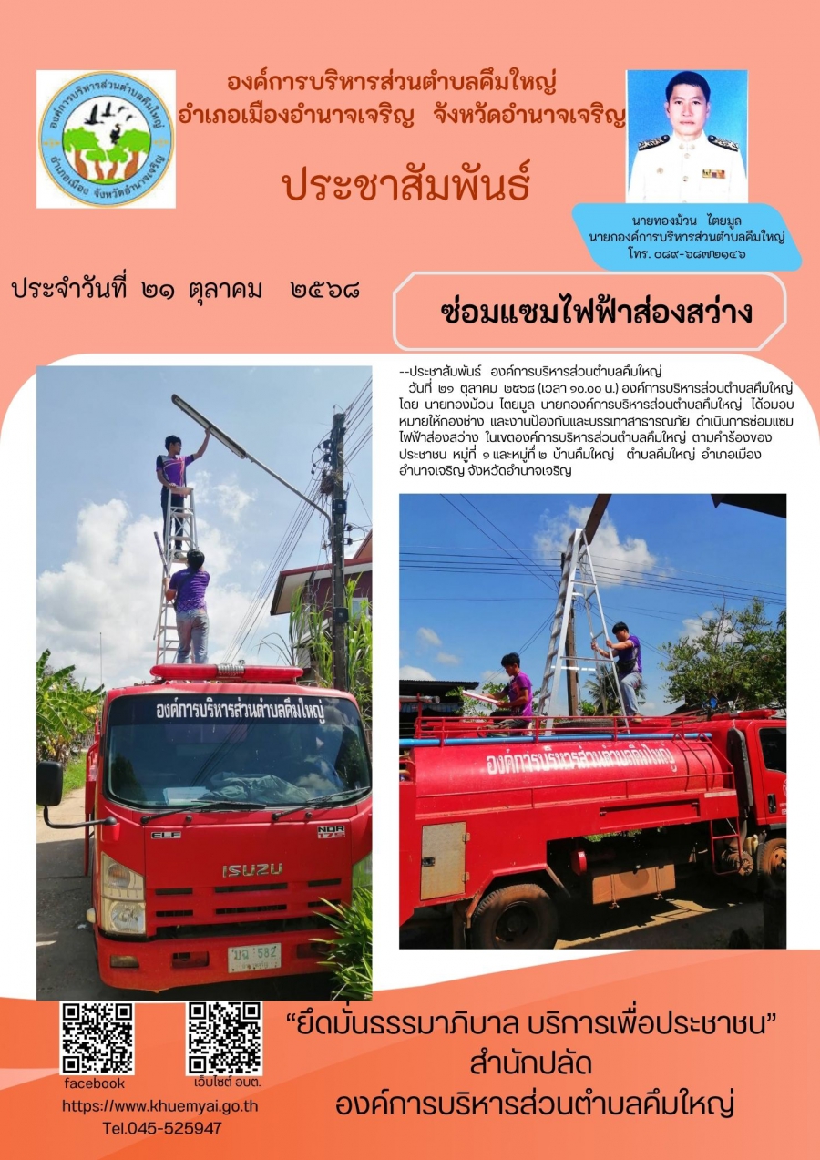 ซ่อมแซมไฟฟ้าส่องสว่างภายในตำบลคึมใหญ่