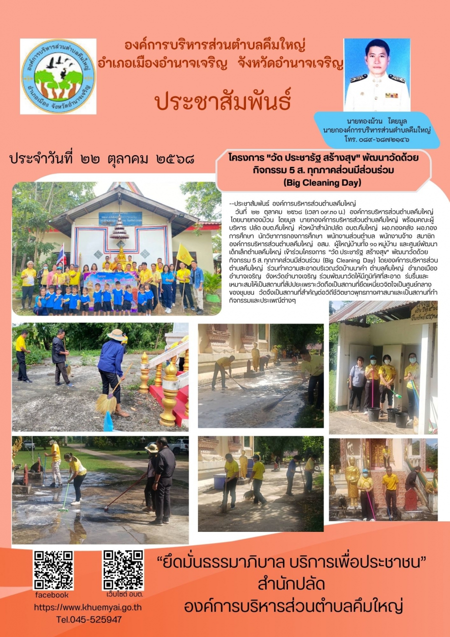 โครงการ "วัด ประชารัฐ สร้างสุข" พัฒนาวัดด้วยกิจกรรม 5 ส. ทุกภาคส่วนมีส่วนร่วม (Big Cleaning Day) วันพุธ, 22 ตุลาคม 2568 11:28 พิมพ์ อีเมล แสดงความคิดเห็น ***กรุณาแสดงความคิดเห็น ด้วยความสุภาพ เคารพต่อสิทธิของผู้อื่น ไม่ละเมิดต่อกฎหมาย และศีลธรรมอันดีของสังคม ข้อความ * ใส่ความคิดเห็นของคุณ... ชื่อ * อีเมล * URL เว็บไซต์ของคุณ (ถ้ามี) back to top